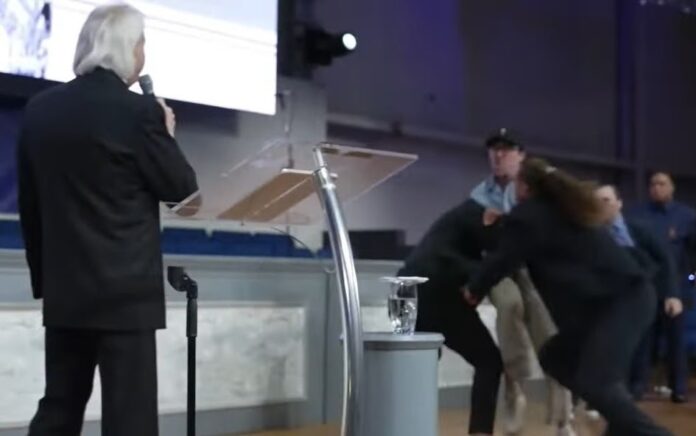 El hombre subió hasta el altar e interrumpió el sermón de Benny Hinn, con el objetivo de confrontar al evangelista, a quien calificó de “falso profeta, charlatán y vendedor de aceite de serpiente”.
