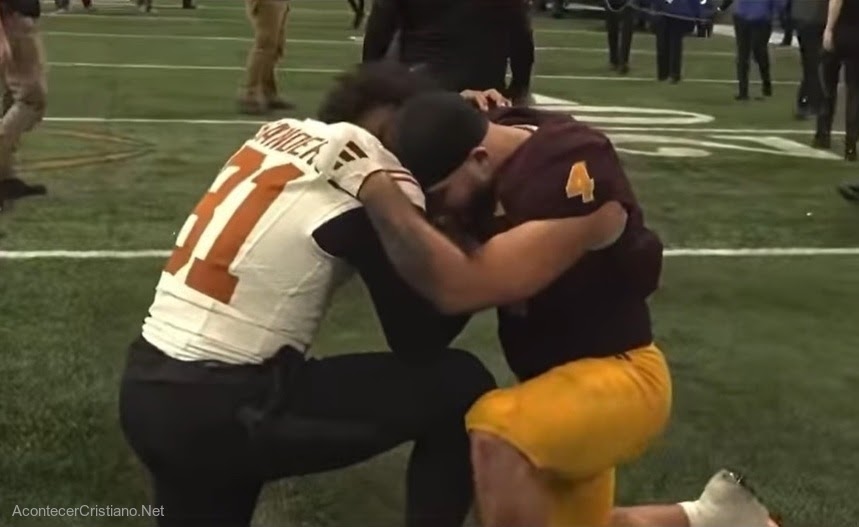 El momento de fe, durante el cual los dos jóvenes se arrodillaron juntos, se produjo después de que Texas derrotara a Arizona State en el Peach Bowl.