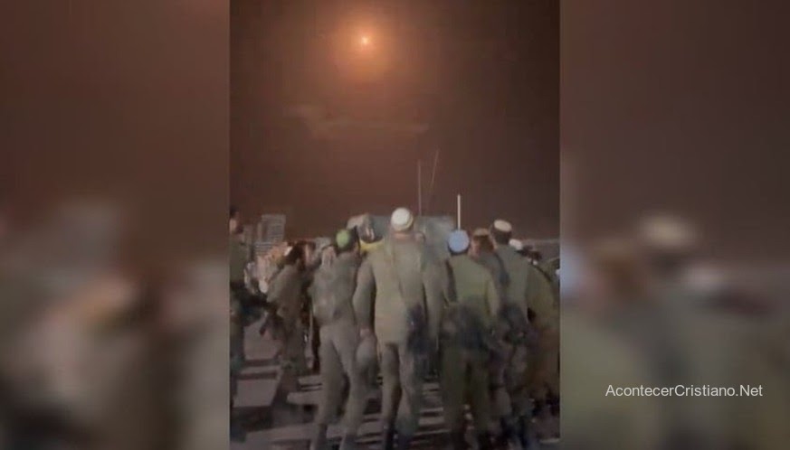 Soldados israelíes cantan y danzan con la Torá mientras el sistema de defensa aérea «Cúpula de Hierro» destruye los cohetes lanzados por el grupo terrorista Hamás, según se muestra en un video que circula por las redes.