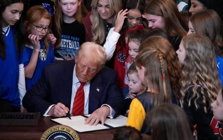 La orden ejecutiva, que entró en vigor inmediatamente, prohíbe a los deportistas transgéneros, que son hombres biológicos, participar en competiciones deportivas femeninas en los Estados Unidos.